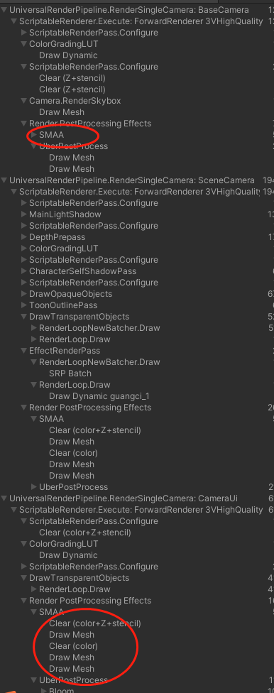 Urp渲染管线对不透明物体会按照从前到后渲染(不支持GPU隐藏面消除),透明物体按照从后到前渲染。Shader的RenderType定义是半透明还是不透明物体。另外前述的渲染Pass和渲染队列等也会影响渲染顺序。合理的渲染顺序能够提高Early-Z的命中率,减少OverDraw。
